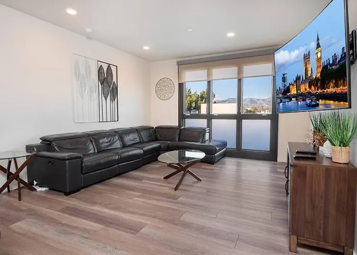 O apartamento Luxurious Penthouse In Beverly Hills - Sleeps 10 oferece cozinha totalmente equipada, bem como quartos com varanda, sofá e cafeteira. Museu de Arte do Condado de Los Angeles está a 2 km de apartamento, enquanto Calçada da Fama de Hollywood é de 7 km de distância.